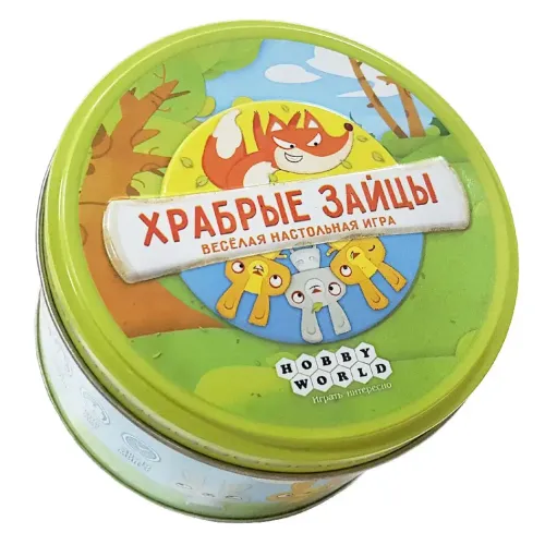 Игра размещается в круглой металлической коробочке. В ней находятся карточки с изображением двух видов зайцев и хитрых лис. На карточках с зайцами написаны цифры, соответствующие их количеству, на карточках с лисами – специальные действия. Играть можно как вдвоем, так и компанией до 6 человек.