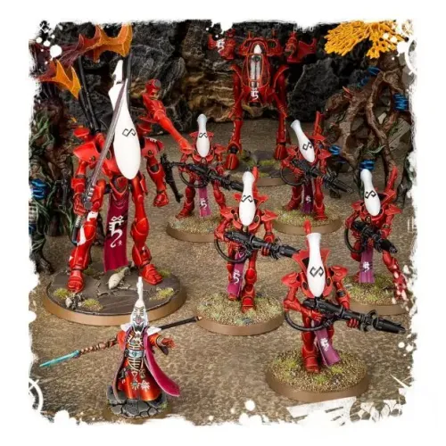 Войска эльдар в бою часто сопровождают конструкты из психокости - особого психореактивного материала, невероятно прочного обычно, и мягкого и поддатливого в руках мастеров-псиоников. В конструкты вживляются души павших эльдар, чтобы они могли служить своему народу даже после смерти. В наборе "Start Collecting! Craftworlds" вы найдете достаточно деталей для сборки боевого формирования эльдар, основанного на призрачных воинах.