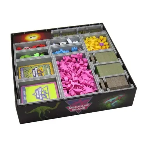 Органайзер для игры Dinosaur Island позволит хранить все компоненты в полном порядки и избавит от ненужной траты времени по разбору и сортировке игровых элементов.