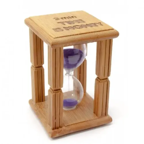 Часы песочные в бамбуке "Time is Money фиолетовый (3 мин) (9,5х6,5х6,5 см) K-003