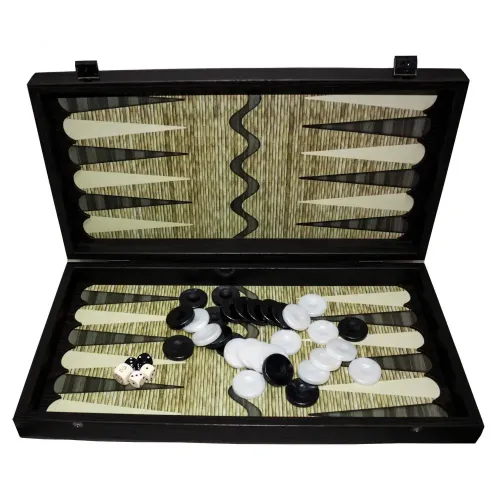Нарды Manopoulos (TXL1WAV) выполнены из натурального дерева, игровое поле 47.8 х 45 см с имитацией бамбука расположено внутри, и имеет ячейки для шашек. Нарды укомплектованы пластмассовыми шашками диаметром 3.5 см и высотой 0.6 см и 4 игровыми кубиками. Внешняя сторона футляра также украшена узором «бамбуковые волны».