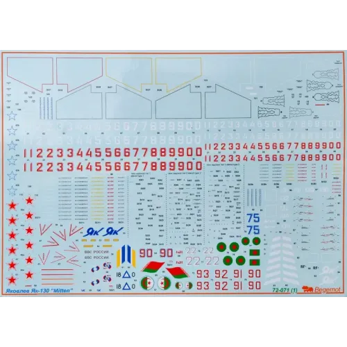 Декаль для самолета Яковлев ЯК-130 "Mitten" в масштабе 1:72 Begemot 72071