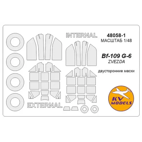 Маска для модели самолета Ме-109G-6, двухсторонняя, рекомендовано для моделей производителя Zvezda в масштабе 1:48