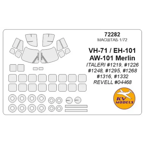 Маска для модели вертолета EH-101/AW-101 TTI / VH-71/ Merlin HC.3 / HMA 1, рекомендовано для моделей производителя Italeri в масштабе 1:72