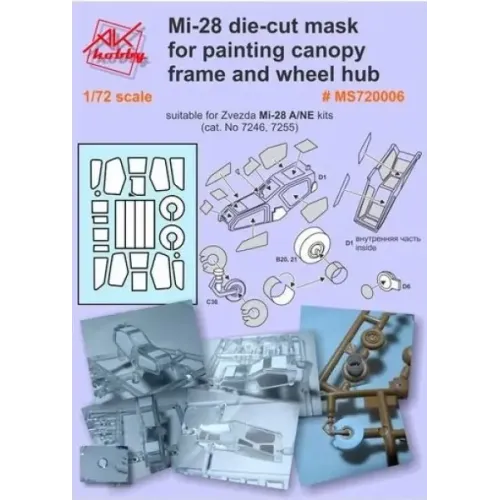 Маска для модели вертолета МИ-28, рекомендовано для моделей производителя Zvezda (7246, 7255) в масштабе 1:72