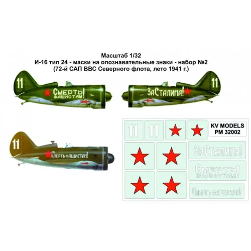 Заказать Маски на опознавательные знаки для самолета И-16 тип 24, № 2 (72-й САП ВВС северного флота, 1941 г.) 1:32 в Киеве можно по телефонам: (096) 285-56-40; (095) 919-18-13; (063) 648-52-58; mail@cbgames.ua
