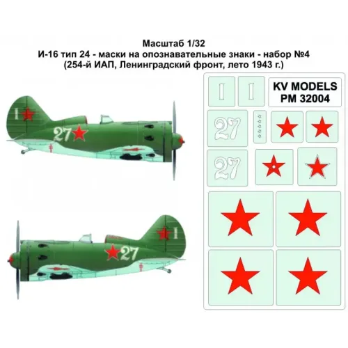 Декали Маски на опознавательные знаки для самолета И-16 тип 24,№ 4 (254-й ИАП, ленинградский фронт, 1943 г. 1:32