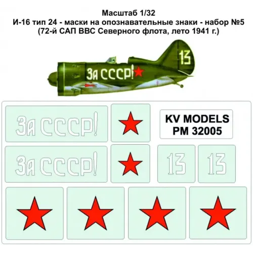 Заказать Маски на опознавательные знаки для самолета И-16 тип 24,№ 5 (72-й САП ВВС северного флота, 1941 г.) 1:32 в Киеве можно по телефонам: (096) 285-56-40; (095) 919-18-13; (063) 648-52-58; mail@cbgames.ua