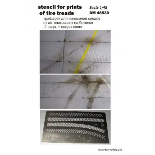 Фототравление: Трафарет для нанесения следов от автопокрышек на бетонке и сапог, 2 вида 1:48