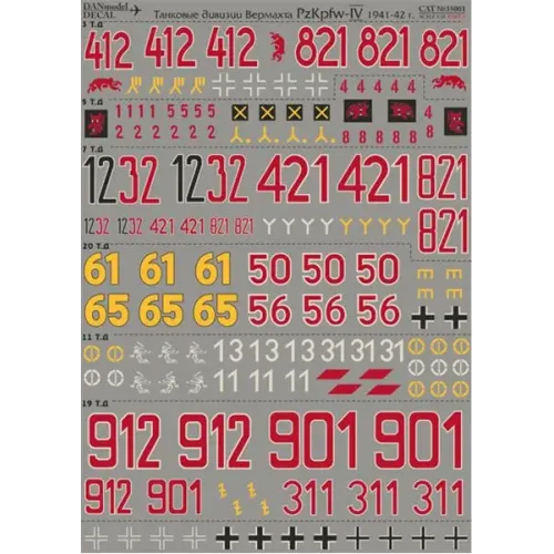 Наборы деталировки Декаль для танковых дивизий Вермахта PzKpfw-IV 1941-42 г. (DAN35001) Масштаб: 1:35