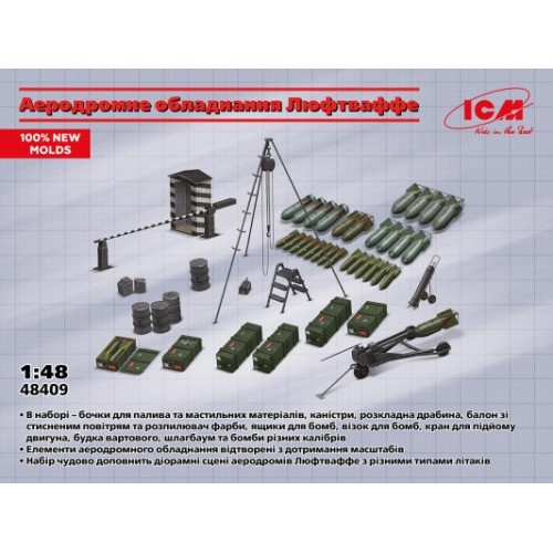 Сборная модель 1/48 Набор аэродромное оборудование Люфтваффе ICM 48409 с доставкой по всей Украине и магазинам Киева и Одессы.