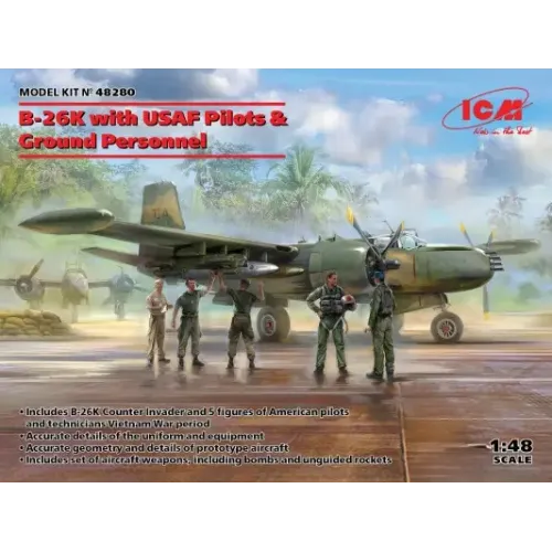 Сборная модель 1:48 Самолет B-26K с американскими пилотами и техниками ICM 48280