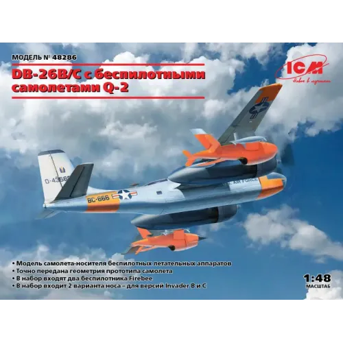 Сборная модель 1:48 B-26B/C с 2 беспилотными аппаратами Q-2A Firebee (ICM 48286)