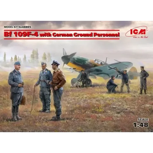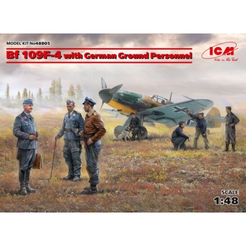 Сборная модель 1:48 немецкий самолет Bf 109F-4 с наземным персоналом ICM48805