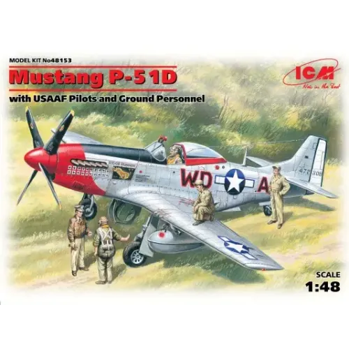 Сборная модель 1:48 Самолет Мустанг P-51D с пилотами ВВС США и наземным персоналом ICM 48153