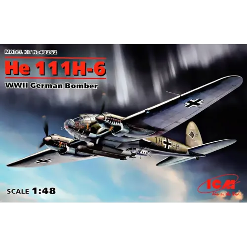 Сборная модель 1:48 Немецкий бомбардировщик He 111H-6, 2 МВ ICM 48262