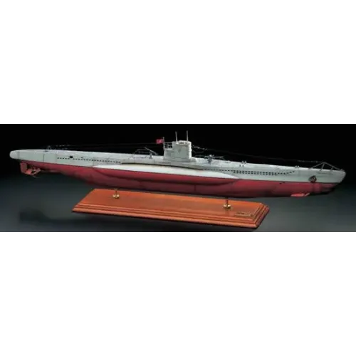 Подводные лодки стали символом флота фашистской Германии во Второй Мировой войне. Самыми массовыми были лодки типа VII различных модификаций. U-47 относилась к типу VIIB. Подлодки проекта VII составляли основу немецкого флота во время второй мировой войны. Подлодка №47 была спущена в декабре 1936 года. За 15 месяцев своей службы она потопила 34 судна союзников. Эта лодка известна тем, что под командованием Гюнтера Прина пробралась в гавань Скапа Флоу, главную базу английского флота. Там U-47 торпедировала линкор "Ройал Оук", повредила вспомогательный корабль "Пегасус" и без повреждений выбралась из базы. 7 марта 1941 года британский корабль Wolverine обнаружил U-47 и забросал ее 10-ю глубинными бомбами. Мощный взрыв, сопровождаемый яркой вспышкой, отметил конец U-47 и ее команды из 48 человек. Комплект Amati поразит даже самого придирчивого моделиста. 90 см корпус выполнен из смолы и требует только небольшого зашкуривания перед окраской. Смола используется и для других основных деталей: боевой рубки, зенитных пулеметов, рулей, перископов и винтов. Верхняя палуба, выполненная из вырезанной лазером деревянной детали, закрыта сверху великолепными фототравленными латунными пластинами. Флаг, металлический якорь и статуэтка, плюс латунные держатели модели заканчивают комплект. Подробные чертежи и иллюстрированная инструкция направляют каждого новичка через весь процесс сборки.