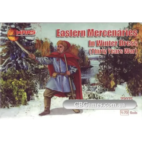 Восточные наемники в зимней одежде (Тридцатилетняя война) в масштабе 1:72 Комплект состоит из: 48 фигур в разных позах Цвет пластика: серый Средняя высота фигуры, мм: 24