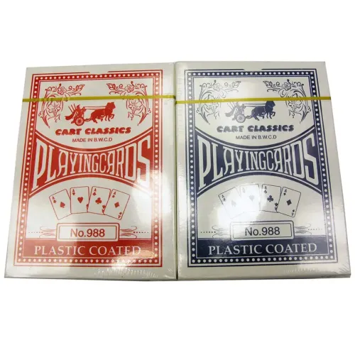 Игральные карты N0988 выполнены из самой лучшей бумаги, импортированной из Германии, с ламинированным покрытием, увеличивающим скольжение и повышающим прочность, идеально подходят для любительской игры. Выпускаются с синей рубашкой.