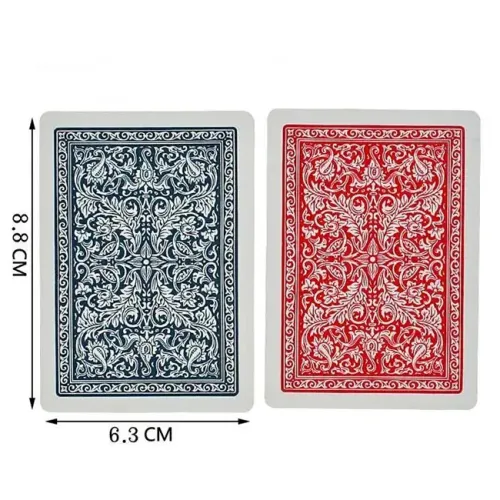 Карты для казино и покера от FOURNIER имеют увеличенный размер индекса в 2х уголках. В блоке карты с обратной стороны красного и синего цвета.