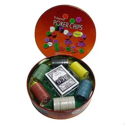 Покерные наборы Покерный набор на 120 фишек в круглой коробке, номинал 1-100, 4гр. (арт. ZR6617)