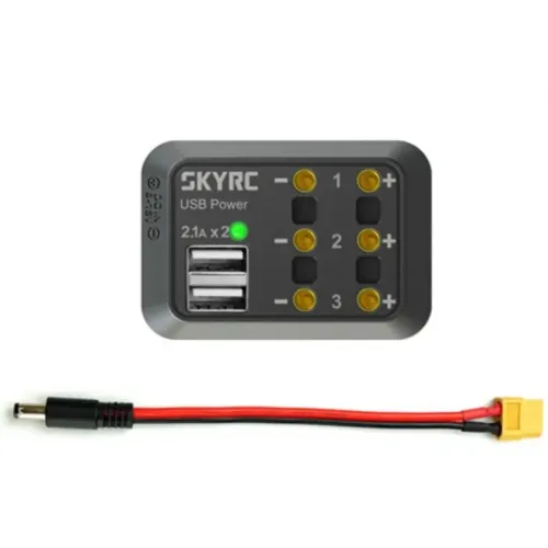 Компактный и удобный разветвитель для подключения трёх зарядных устройств SkyRC или других потребителей к одному блоку питания. В комплекте прилагается шнур-переходник с наконечником "DC MALE" для удобного подключения к блоку питания. Также разветвитель оснащён двумя портами USB для подключения смартфонов, планшетов и USB-ламп.