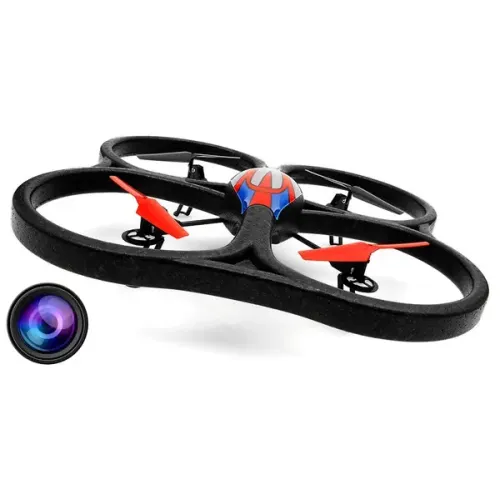Встроенная камера записывает видео 640x480 со звуком и фотоснимки на карту памяти microSD. Управляется камера пультом управления квадрокоптера: отдельные кнопки для записи видео и для фотосъёмки.