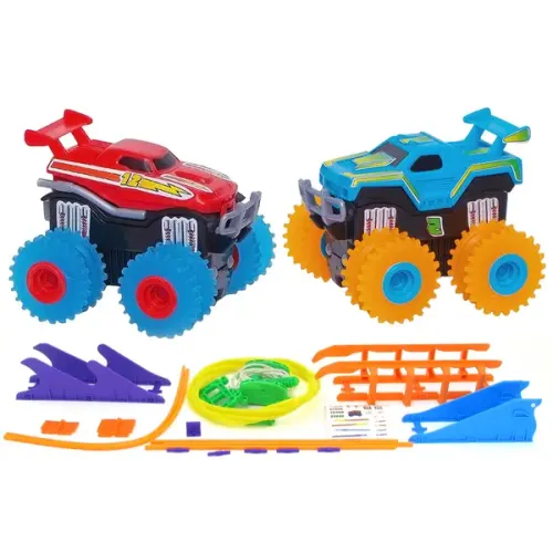 Игрушечные машинки Машинки на бат. Trix Trux набор 2 машинки с трассой (красный+синий)