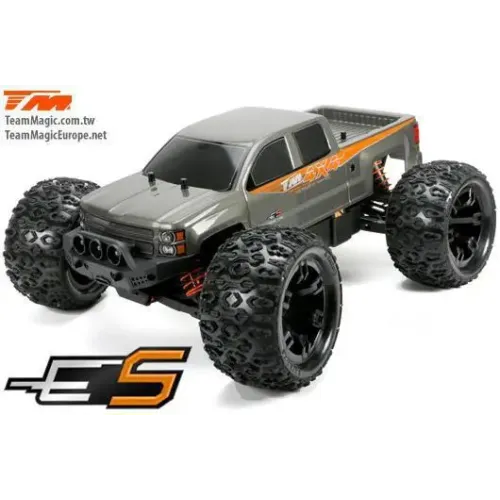 Team Magic E5 самый быстрый и прочный монстр-трак масштаба 1:10 на рынке. Дизайн монстра E5 подчёркивает его монолитность и мощь. Передний бампер имеет массивную конструкцию и оснащён подсветкой из трех белых и двух красных светодиодных фар. Комплектуется Team Magic E5 окрашенным кузовом из поликарбоната, который защищает внутренние компоненты от прямых ударов. Правильная аэродинамическая форма кузова повышает приемистость модели и устойчивость в прыжках. Пятое колесо сзади модели служит для поддержки во время езды на задних колёсах и предотвращает опрокидывание. Заднее колесо снабжено подшипником и расположено на массивной стойке с регулируемым углом.