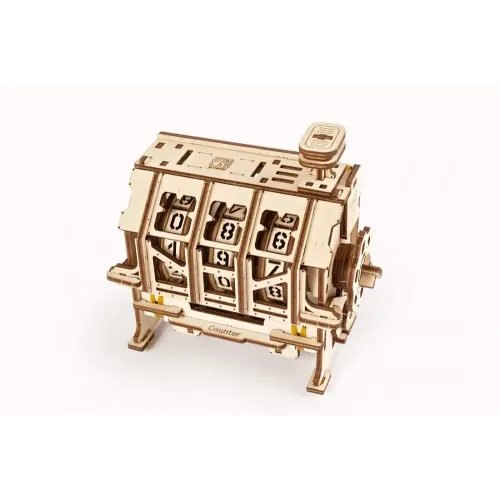 Счетчик – это стилизованная учебная модель, интерактивное учебное пособие, предназначенное только для изучения основ и принципов работы его механизмов. Он позволяет вести подсчет повторяющихся действий и является ключевым механизмом одометра. Работу модели обеспечивает три набора шестеренок-барабанов с цифрами от 0 до 9 и механизмом «Диск Женевы» (Мальтийский крест). В модели предусмотрено 2 типа «снятия данных»: кнопкой-кликером сверху на корпусе и ручкой-крутилкой сбоку на модели.