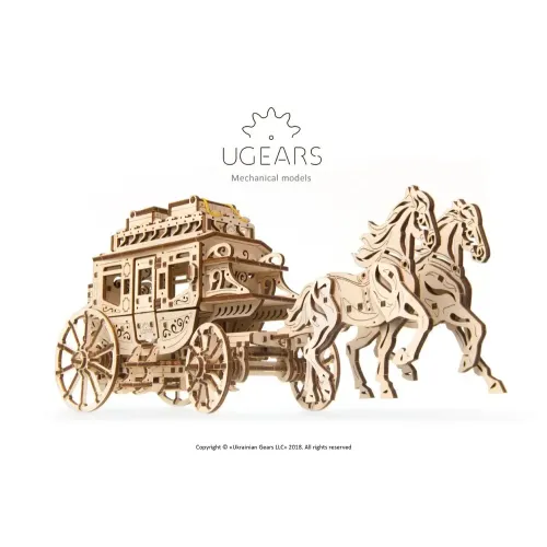 Ugears представляет легендарное транспортное средство конца 18 – 19 века. Именно в этот период почтовый дилижанс стал одним из самых распространенных на территории Америки способов коммуникации, которые перевозили почту, небольшие грузы и, конечно, пассажиров. Дилижанс стал неотъемлемым атрибутом культуры Дикого Запада, романтика которой воспета в фильмах и фольклоре.