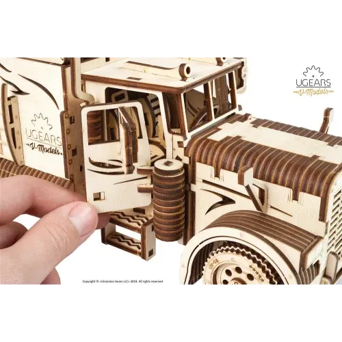 Конструктор Тягач VM-03 изготовлен из качественной фанерной доски, которая проверена европейскими лабораториями и используется также в производстве детской мебели. Модель полностью укомплектована всем необходимым для сборки. Качество изготовления деталей очень высокое – для вырезания элементов из фанерной доски используется лазерный метод. Разрезы сделаны лазерным станком с ЧПУ, линии - примерно с человеческий волос.
