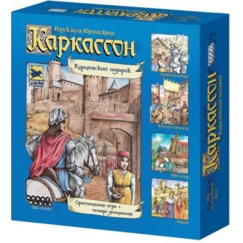 Настільна гра Каркасон. Королівський подарунок , випущена в 2011 році, включає базову версію «Каркассона», а також 5 доповнень до нього: «Каркассон. Купці та будівельники», «Каркассон. Таверни та собори», «Каркассон. Король», «Каркассон. Абат і мер», «Розвідник» для Каркассон. Мисливці та збирачі».