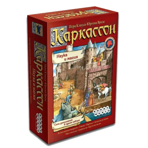 От і до Каркассона дістався прогрес, наповнивши його літальними апаратами, поромами, швидконогими скакунами і невідомими літаючими об'єктами. Воістину, легендарна настільна стратегічна гра Каркассон отримала третю збірку доповнень під назвою Наука і Магія. Причому збіркою унікальною, оскільки в ній шанувальники цієї дивовижної гри знайдуть сім міні доповнень, з якими найцікавіший процес класичної гри стає ще більш захоплюючим і різноманітним. Погодьтеся, володіти одним Каркассоном – добре, а одразу 7 – просто чудово! Ці самобутні доповнення: Літальні апарати, Гонці, Пороми, Золоті копальні, Маг і відьма, Грабіжники, Кола на полях, всі разом і кожне окремо можуть внести значні зміни до самого ігрового процесу, а також кардинально попрацювати над ходом сюжету.