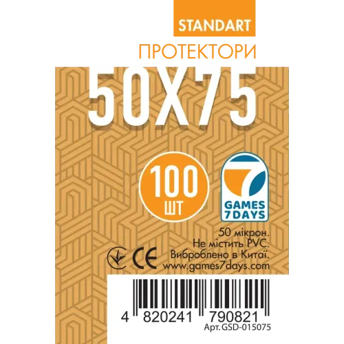 Комплектація аксесуару Протектори Games7Days (50 x 75 мм):