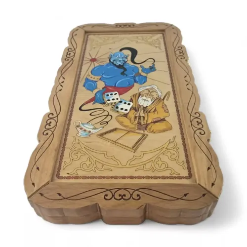 Ці нарди справжній витвір мистецтва, який прикрасить ваш будинок своєю витонченою красою та загадковістю. На кожній дошці зображені Джин і Султан, які супроводжують скриню зі скарбами, що надає нардам особливого східного шарму і загадковості.