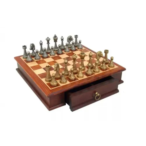 Шахи Шахматы Italfama Staunton c ящиком для хранения фигур фигуры классические из металла доска дерево 32X32 вес 6 кг (70M333W)