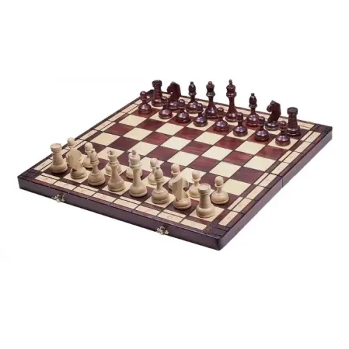 Фігури зроблені з граба, їх дизайн ретельно опрацьований, завдяки тканинним підкладкам знизу легко ковзають по дошці. Якісно зроблена складна шахівниця шпонована червоним деревом і платаном. Усередині є комірки для зберігання шахових фігур.