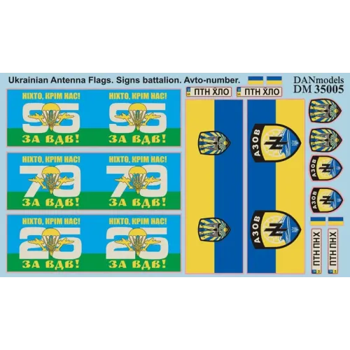 Декаль: Прапори на техніці ЗСУ, емблеми батальйонів, автомобілів, АТО 2014-15 1:35