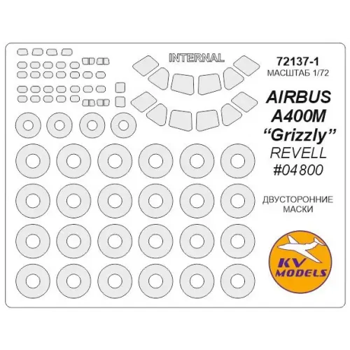 Маска для моделі 1:72 літака Аеробус A 400M “Grizzly", двусторонняя маска, рекомендовано для моделей производителя Revell в масштабе 1:72 (#04800)