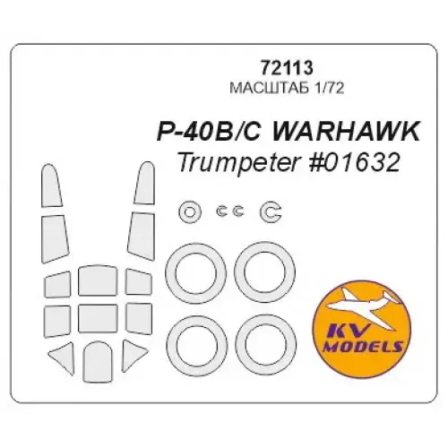 Маска для моделі літака P-40 B/C Warhawk, рекомендовано для моделей виробника Trumpeter у масштабі 1:72