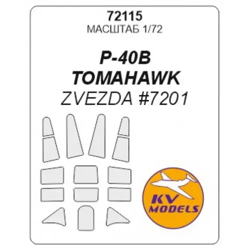 Маска для модели самолета P-40 B Tomahawk, рекомендовано для моделей производителя Zvezda в масштабе 1:72