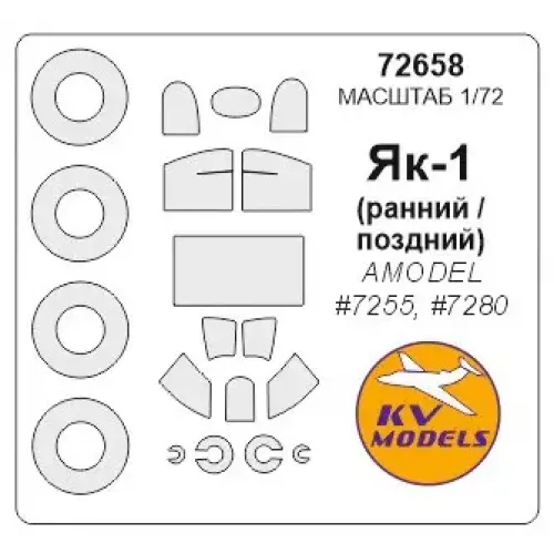 Маска для модели самолета Як-1, ранний/поздний (Amodel) 1:72