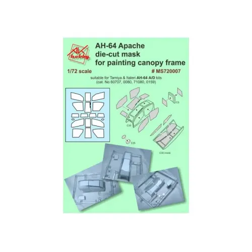 Маска для моделі гелікоптера AH-64 Apache, рекомендовано для моделей виробника Italeri, Tamiya (№60707, №0080, №71080, №0159) у масштабі 1:72