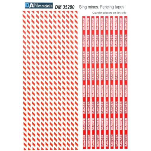 Декалі Матеріал для діорам з паперу: зона розмінування. огороджувальні стрічки, попереджувальні знаки 1:35