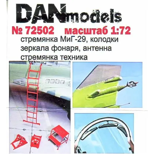 Фототравлення Cтремянка МиГ-29, стопорные колодки, стремянка техника, зеркала фонаря, антенна (DAN72502) Масштаб: 1:72