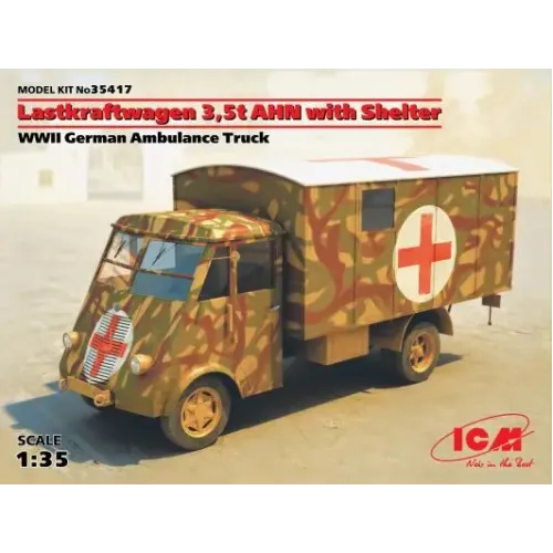 Збірна модель 1/35 Німецький санітарний автомобіль Lastkraftwagen 3.5 t AHN з укриттям ICM 35417 з доставкою по всій Україні та магазинам Києва та Одеси.