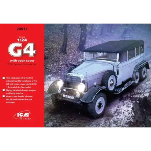 "Збірна модель 1/24 Автомобіль німецького керівництва 2 Світової війни з піднятим тентом Typ G4 ICM 24012" з доставкою по всій Україні та в магазинах Києва й Одеси.