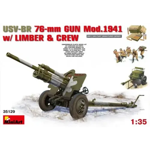 Замовити Збірна модель 1:35 Радянська 76-мм гармата УСВ-БР зразка 1941р. з артилерійським передком та розрахунком Miniart 35129 в Києві можна за телефонами: + 38 (096) 285 56 40; + 38 (095) 919 18 13; +38 (063) 648 52 58; mail@cbgames.ua