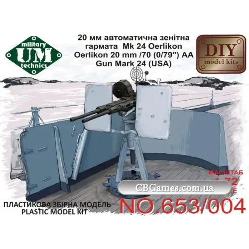 Бронетехніка та артилерія Автоматична гармата Oerlikon 20 mm/70 (0,79) AA mark 24 (USA) (UMT653-004) Масштаб: 1:72